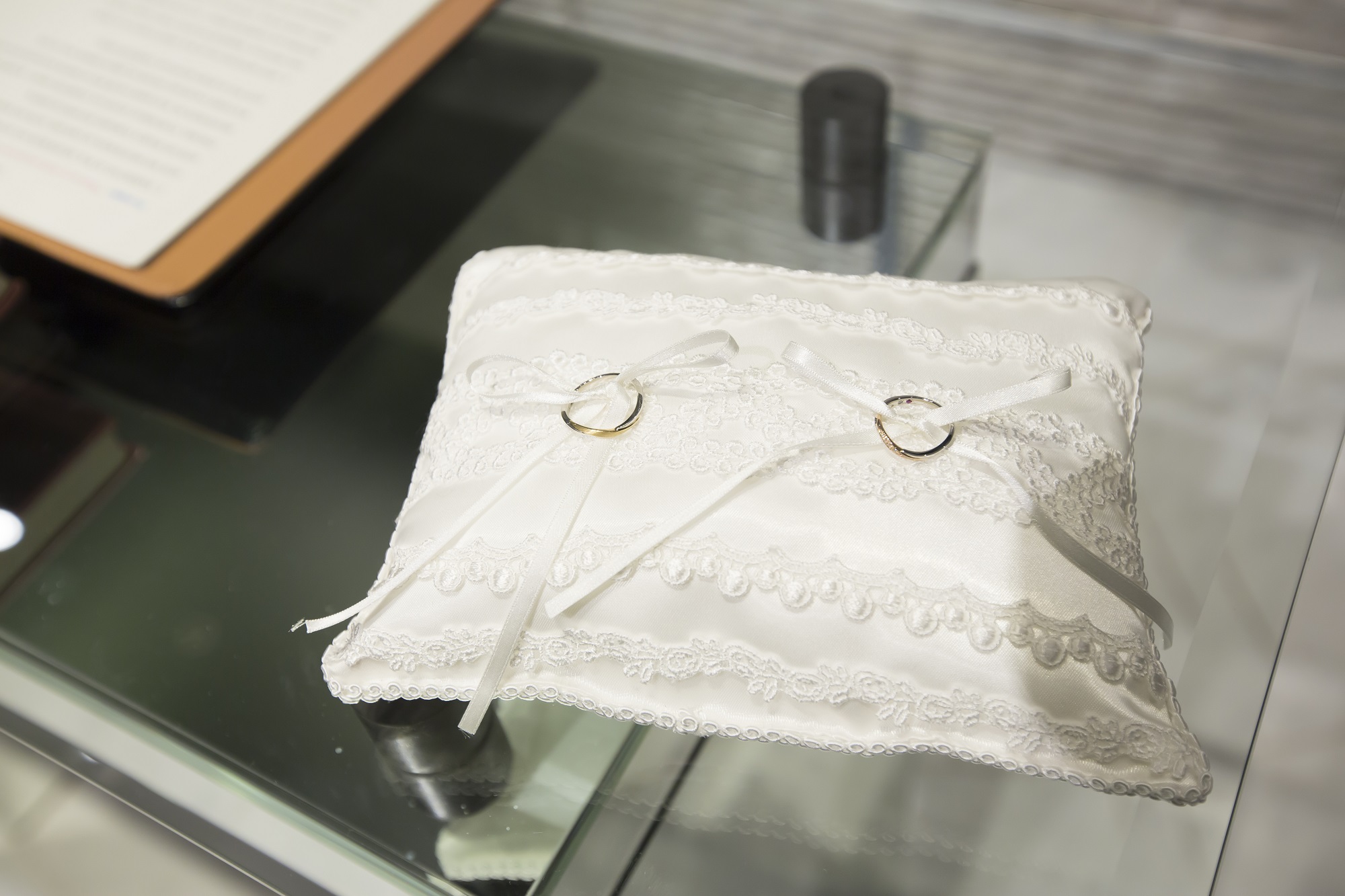 指輪をこのリボンへ通していただき