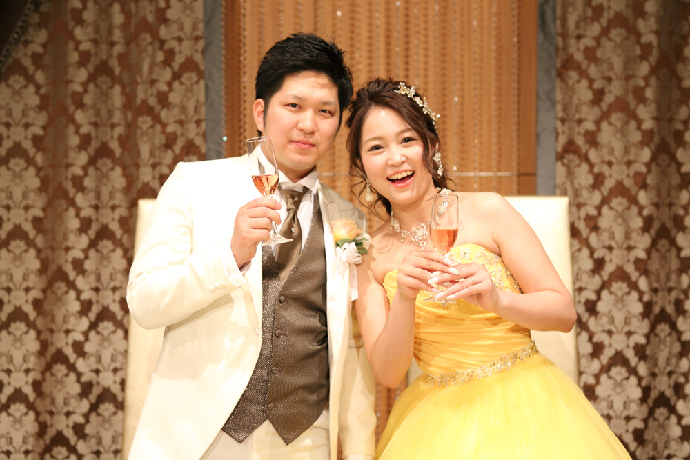 純白のウェディングドレスと、黄色のカラードレスを両方着用することができてハッピーでした♪
