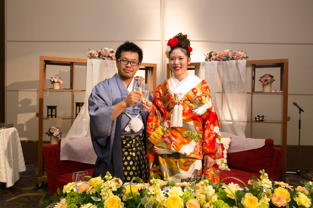 洋装と和装どちらにしようかと悩んでいたのですが、スタッフが「何着選んでも『貯金0円結婚式プラン』の費用の範囲内ですよ」と教えてくださったので、気に入った衣装を全部選ぶことができました。