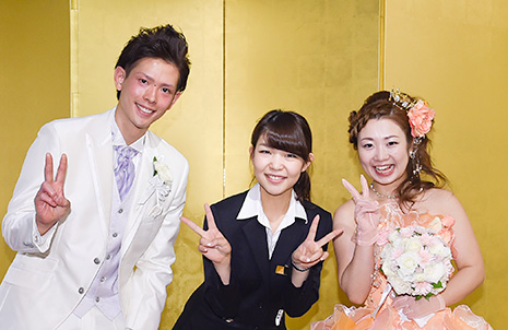 - A.結婚式についてなにも知らない私たちに1から優しく丁寧に教えてくださり、すごく助かりました。担当の八木さんには、いろいろワガママを言ったのにいつも笑顔で聞いて下さり、つい甘えてしまいました。ステキな結婚式をサポートして頂き、本当にありがとうございました。